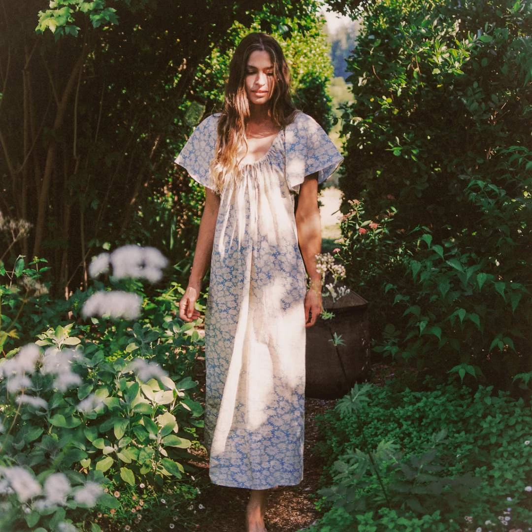 - Relaxed fit ankle-length dress with adjustable gathering at neckline with tie