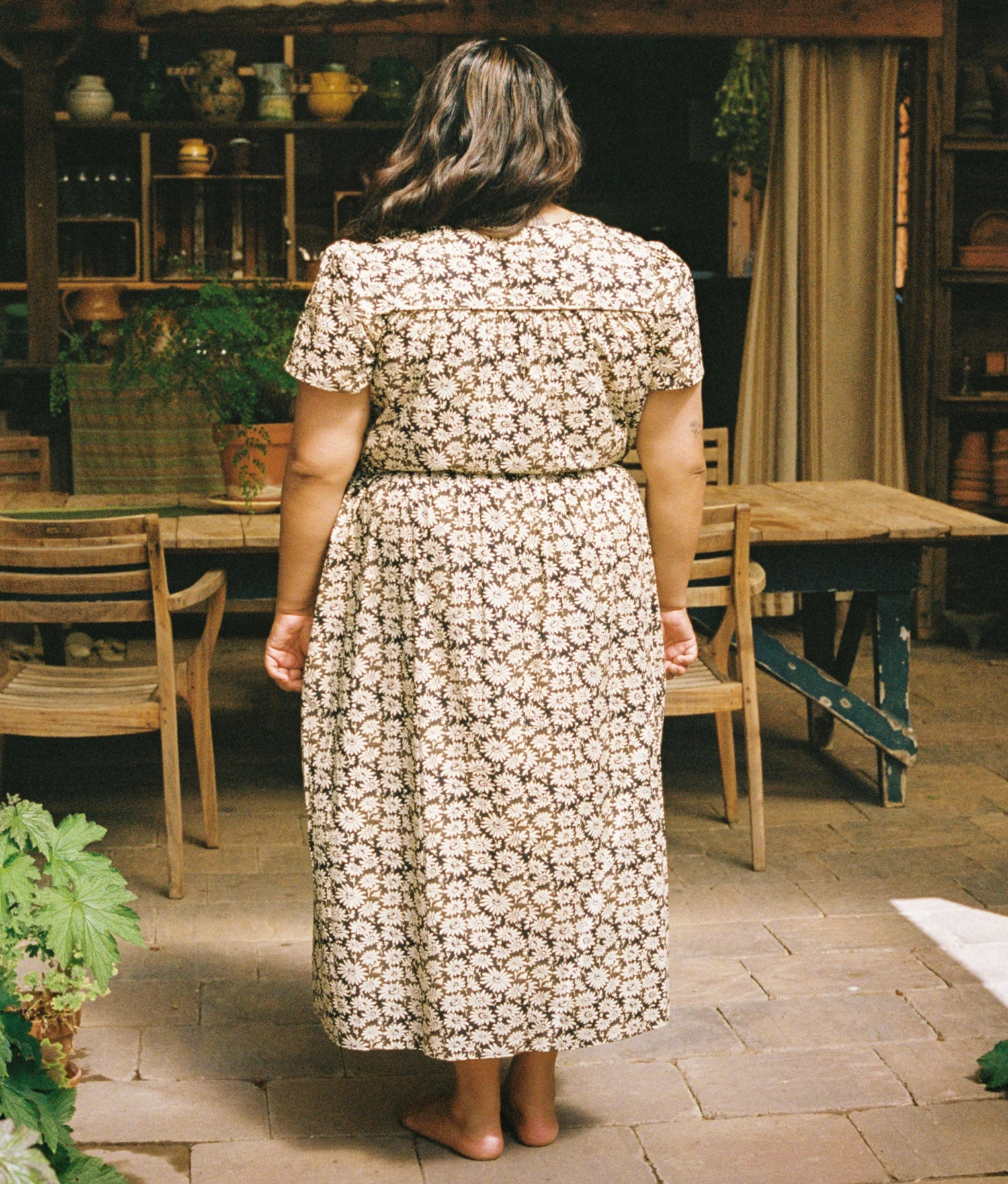 - Short-sleeved midi dress with pockets