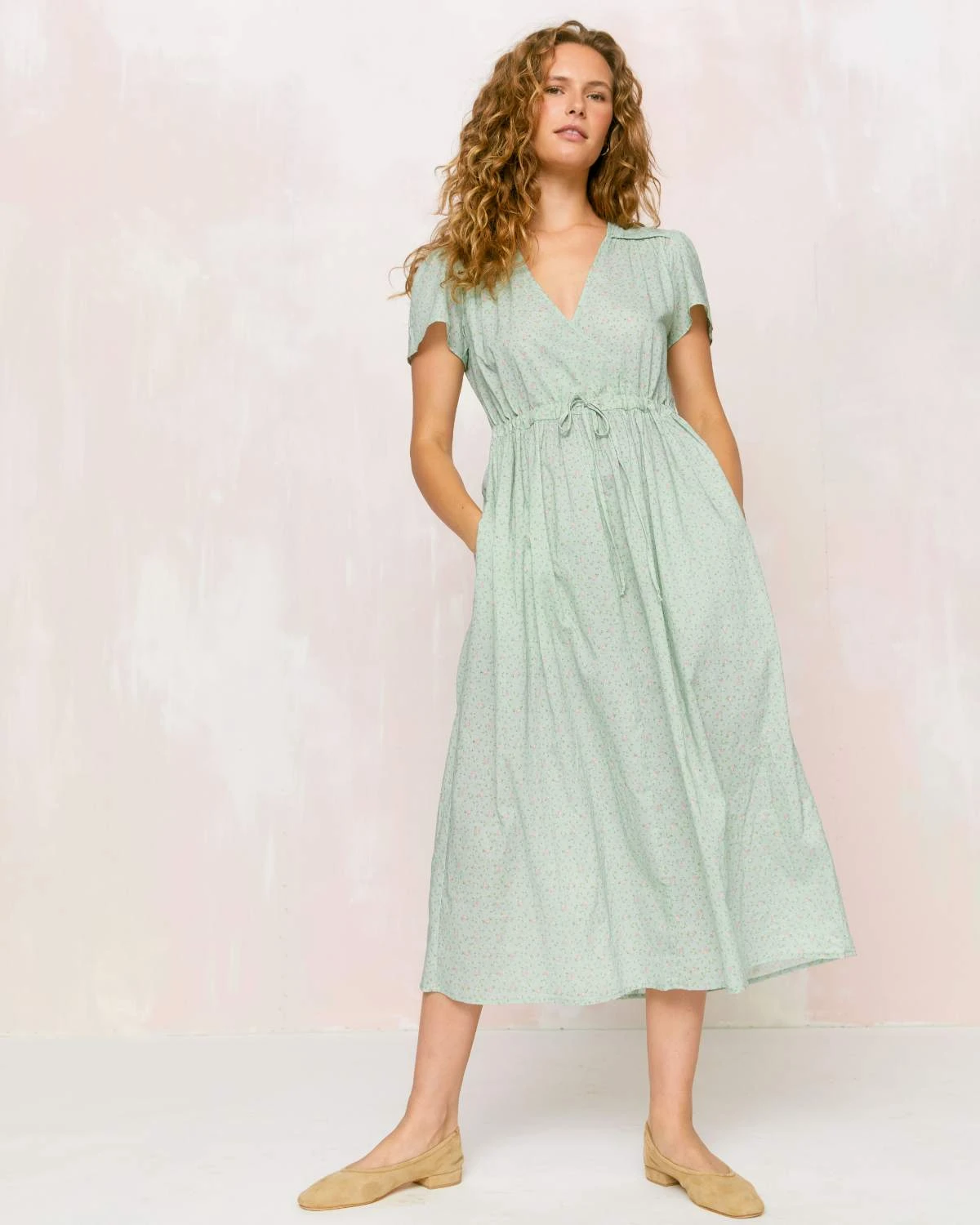 - Short-sleeved midi dress with pockets