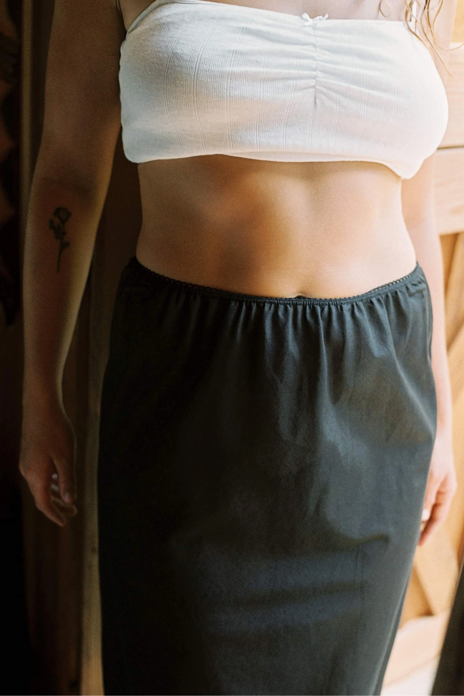 - Bias skirt slip with elasticated waist and scallop trim detail