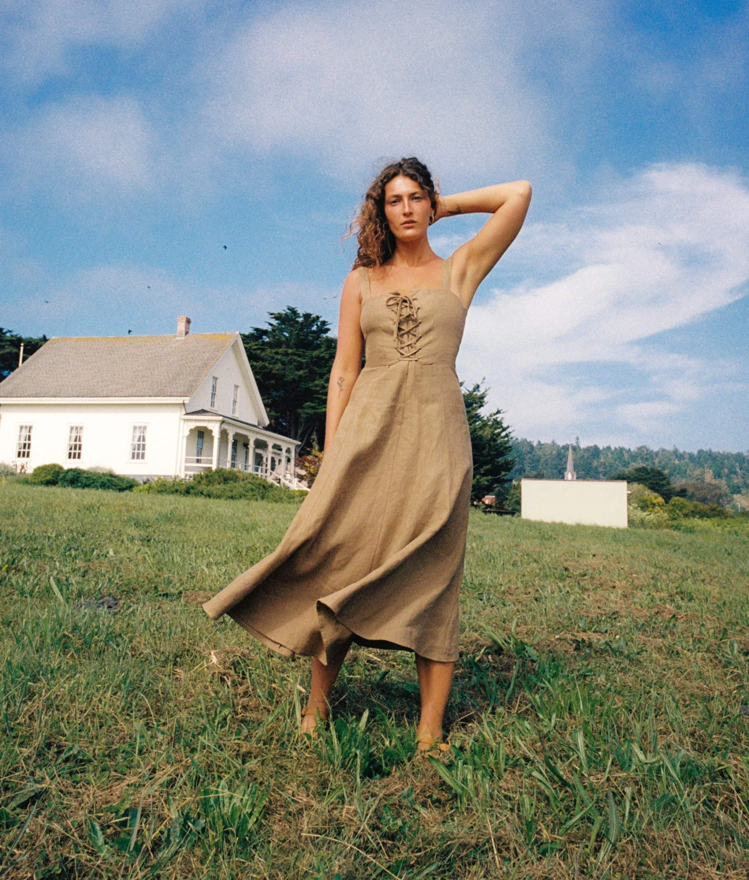 - Corset style-inspired dress crafted from 100% Organic Linen