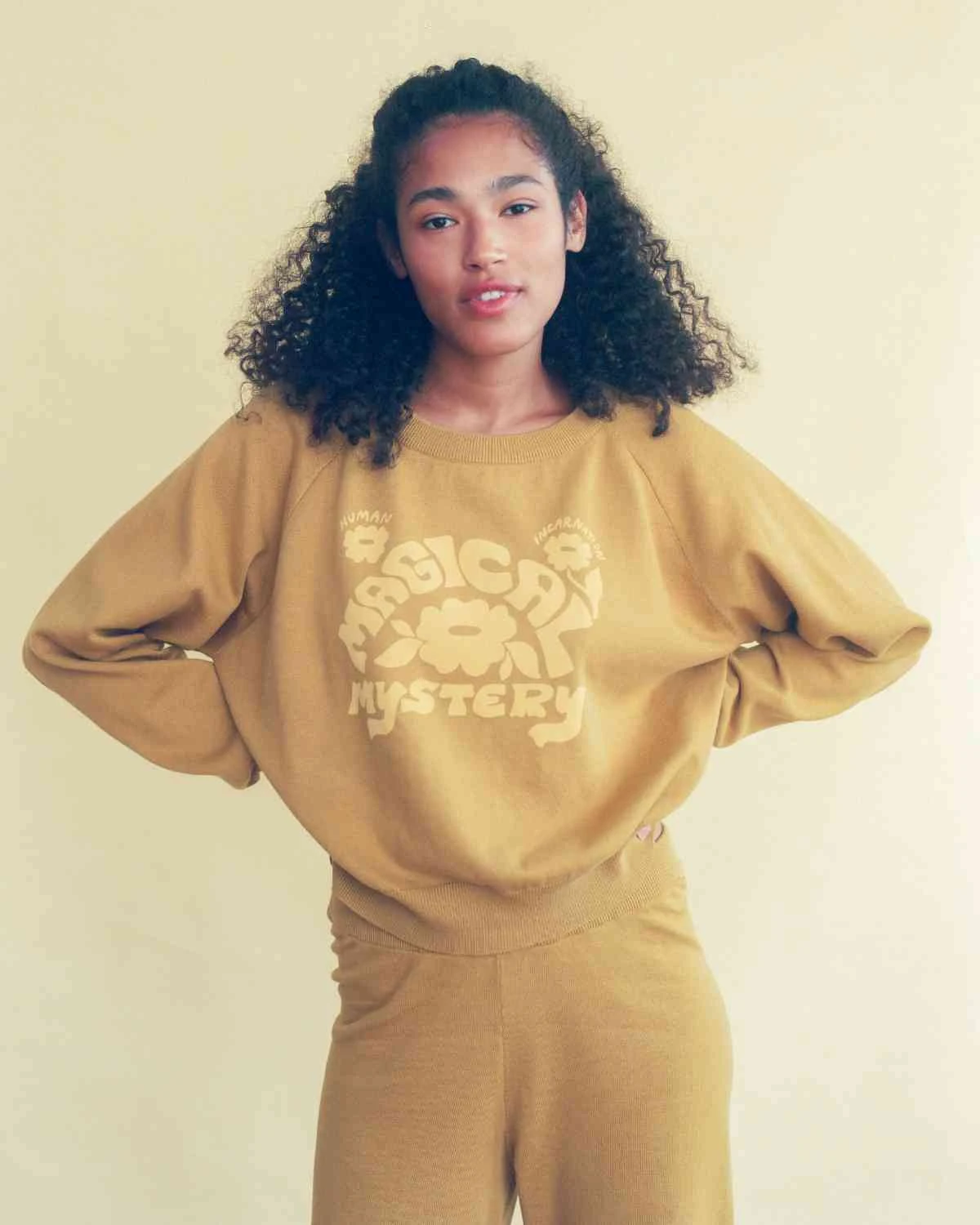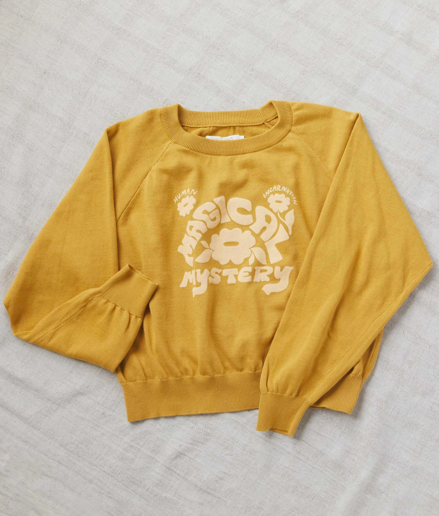 - Original Magical Mystery graphic on the front of the sweater designed by artist Catie St. Jacques of Sun Keep